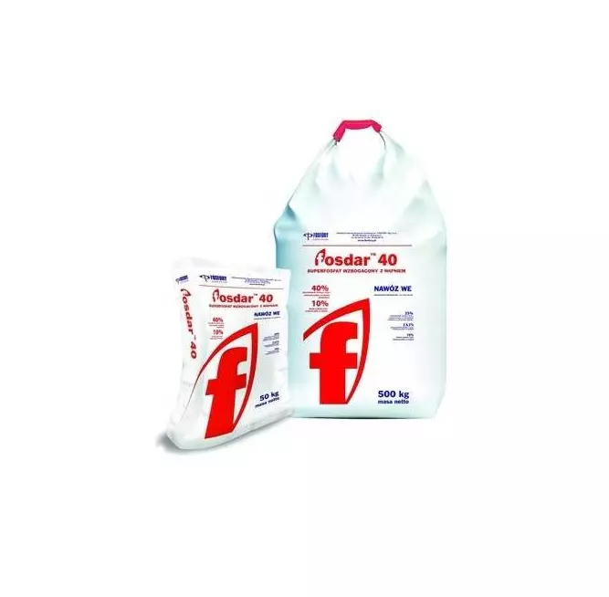 Superfosdar40 відноситься до групи найбільш концентрованих фосфорних добрив. Добриво додатково містить кальцій в кількості 10% (CaO) і сірку, мікроелементи (B, Co, Cu, Fe, Mn, Mo, Zn) отримані із природніх фосфатів, являються цінним доповненням до добрива, покращуючи біодоступність інших компонентів.